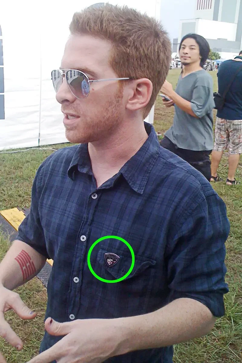 Actor Seth Greene wearing the RRM lapel pin I designed.