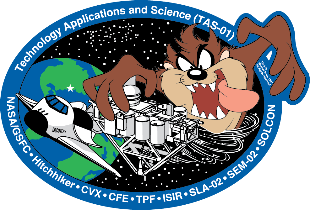 The emblem design for the Technology Applications and Science (TAS-01) mission is the only official mission emblem designed in a cooperative agreement between NASA and Warner Bros. during the entirety of the Space Shuttle Program. I was honored and grateful to be selected for this project from amongst a large pool of candidates. This design has been displayed at the Air and Space Museum, The Smithsonian Museum and the Warner Bros. corporate museum.